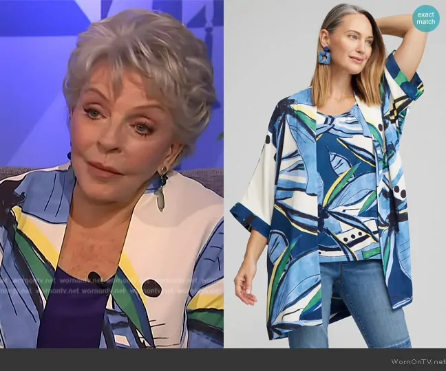 Chicos Floral Print Long Kimono worn by Susan Seaforth Hayes on Access Hollywood