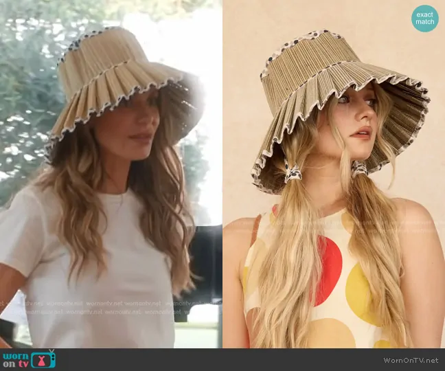 Dorit Kemsley on The Real Housewives of Beverly Hills on Bravo was spotted wearing this polka dot straw hat on The Real Housewives of Beverly Hills on episode 'Life's a Beach' (14x03) in Dec 2024. Dorit's Hat is the Luxe Capri Hat in Polka Monochrome by Lorna Murray.