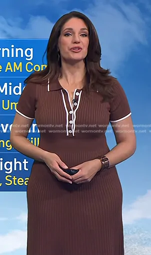 Maria Larosa on Today on NBC was spotted wearing this brown ribbed polo dress on Today on Jan 19 2026's episode. Maria L's Dress is the Diana Midi Dress by Petal and Pup.