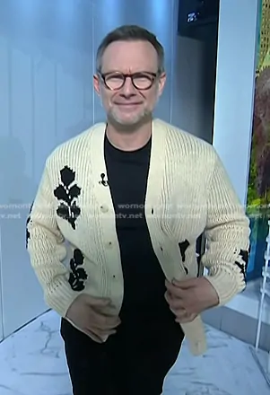 on Today on NBC was spotted wearing this ivory knit cardigan on Today on Dec 11 2024's episode. 's Sweater is the Mika Cardigan 6620 in Ecru by NN07.