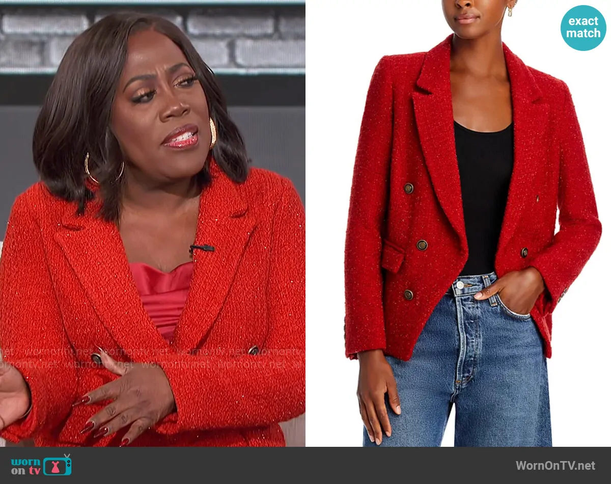 Sheryl Underwood on The Talk on CBS was spotted wearing this red tweed blazer on The Talk on Dec 16 2024's episode. Sheryl's Jacket is the Tweed Blazer by Aqua.