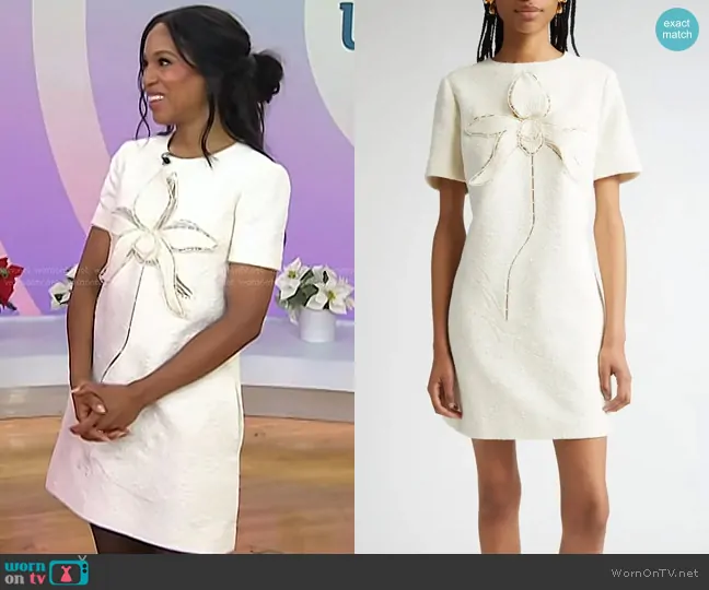 on Today on NBC was spotted wearing this white dress and grey floral coat on Today on Jan 06 2025's episode. 's Dress is the Orchid Embroidered Tweed Shift Dress in Ivory by Oscar de la Renta . 's Coat is the Oversized Wool Twill Coat with Cut Out Orchid Embroidery by Oscar de la Renta.