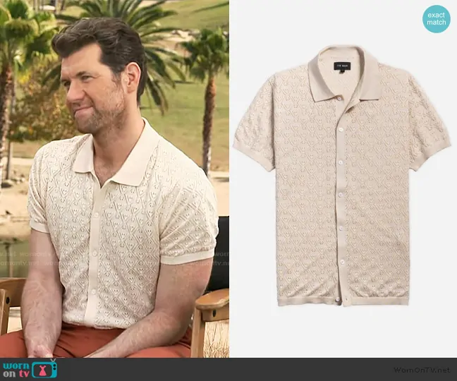 The Tie Bar Full Placket Pointelle Ivory Polo worn by Billy Eichner on Access Hollywood