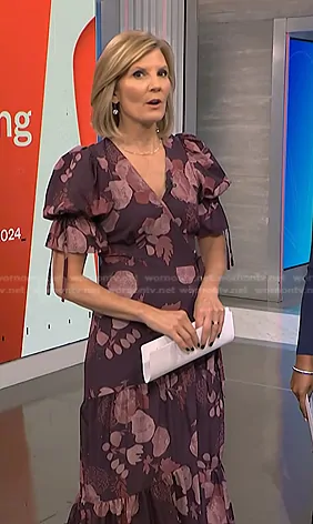 Kate Snow on NBC News Daily on NBC was spotted wearing this purple floral wrap dress on NBC News Daily on Dec 17 2024's episode. Kate's Dress is the Floral Midi Wrap Dress in Purple by Slate & Willow.