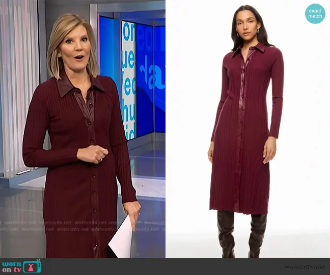 Kate Snow on NBC News Daily on NBC was spotted wearing this burgundy leather trim dress on NBC News Daily on Jan 30 2025's episode. Kate's Dress is the Variegated Rib Knit Leather Combo Dress by Toccin x RTR.