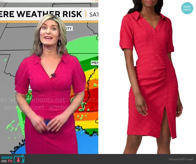 on CBS Mornings on CBS was spotted wearing this pink collared dress on CBS Mornings on Dec 28 2024's episode. 's Dress is the Pink Slit Dress by Nanette Lepore .