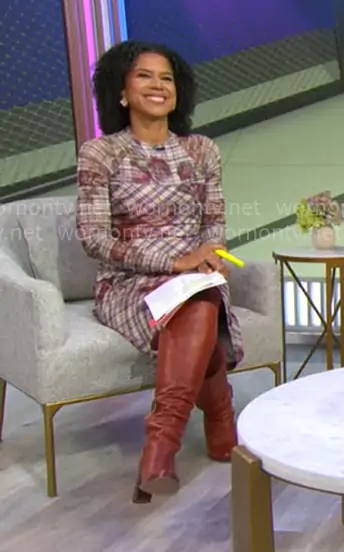 Amur Edith Dress in Rose Check worn by Adriana Diaz on CBS Mornings