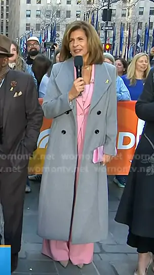 Hoda Kotb on Today on NBC was spotted wearing this grey coat on Today on Mar 25 2026's episode. Hoda's Coat is the Double Breasted Wool Blend Coat by PLAERPENER at Amazon.