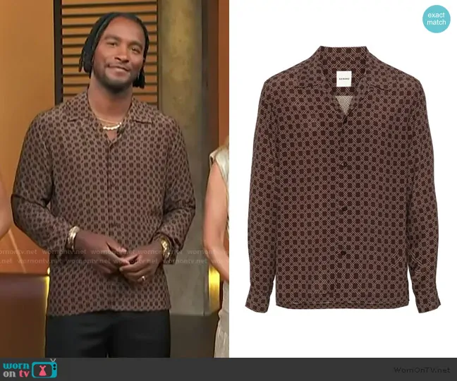 Scott Evans on Access Hollywood on NBC was spotted wearing this brown printed shirt on Access Hollywood on Jan 07 2025's episode. Scott's Shirt is the Loose Fit Shirt by Sandro.