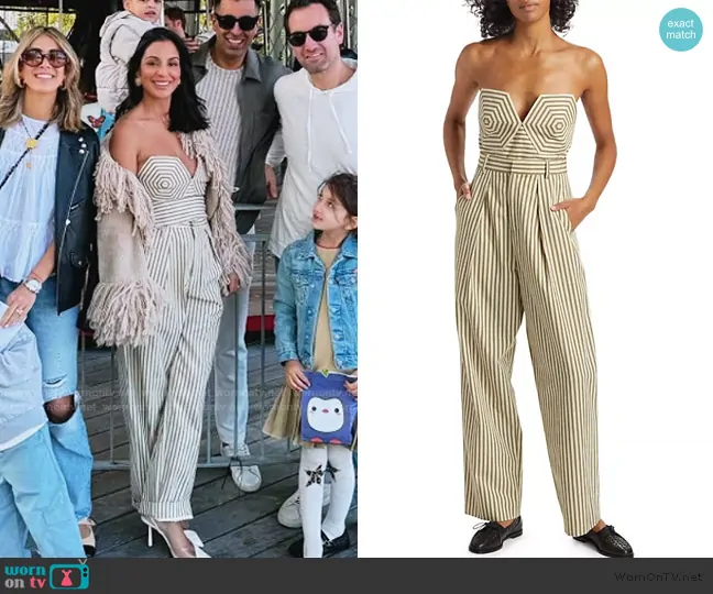Jessel Taank on The Real Housewives of New York City on Bravo was spotted wearing this strapless striped top and pants on The Real Housewives of New York City on episode 'Dinner Disasters and Breakfast Breakdowns' (15x13) in Jan 2025. Jessel's Top is the Suki Striped Bustier Top by Mara Hoffman . Jessel's Pants is the Marella Stripe Wide-Leg Trousers by Mara Hoffman.