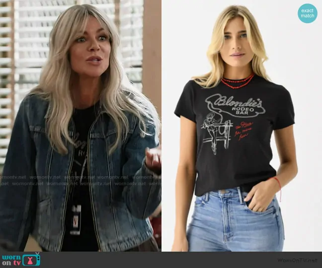 Dee (played by Kaitlin Olson) on Abbott Elementary on ABC was spotted wearing this denim jacket on Abbott Elementary on episode 'Volunteers' (4x09) in Jan 2025. 's Top is the Bondies Classic Tee by Re/Done . 's Jacket is the Slim Fit Denim Jacket by Re/done.