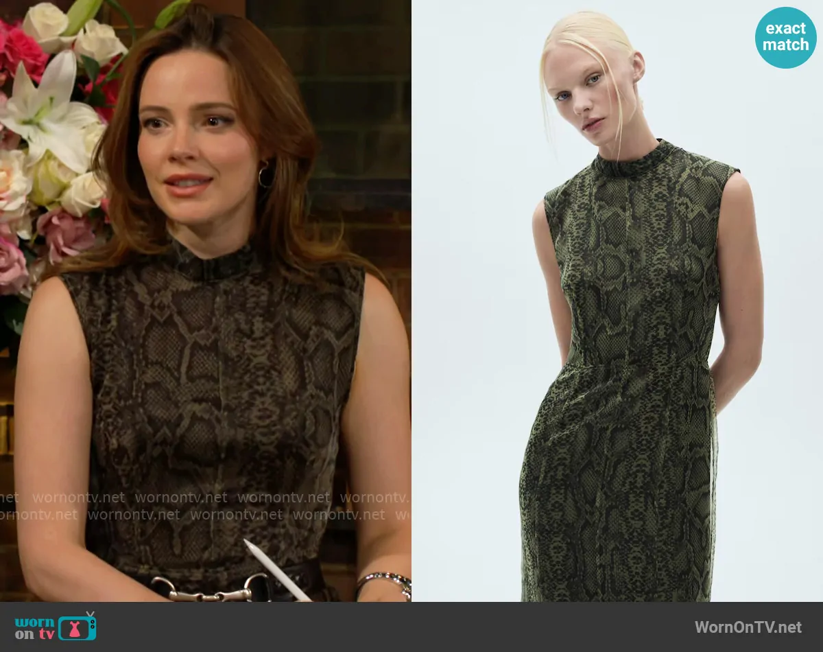 Tessa Porter (played by Cait Fairbanks) on The Young and the Restless on CBS was spotted wearing this snake print dress on The Young and the Restless on Jan 10 2025's episode. Tessa's Dress is the Open-back organza dress by Mango.