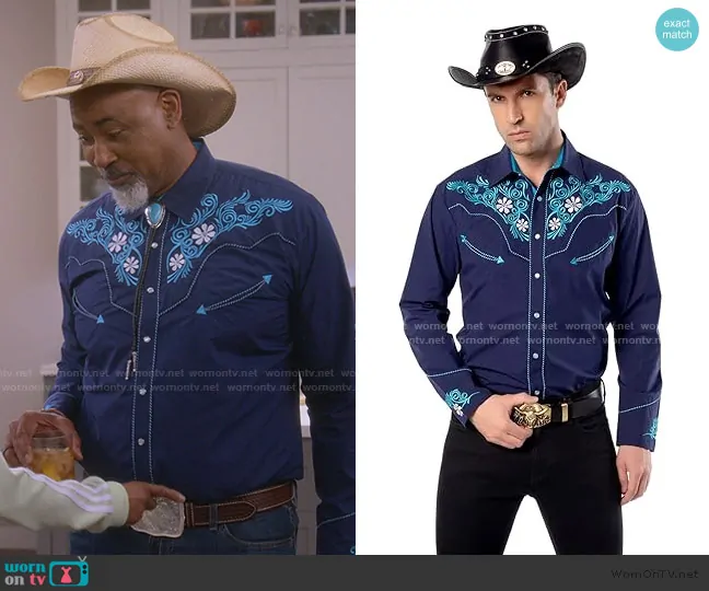 Frank (played by Lamont Thompson) on The Upshaws on Netflix was spotted wearing this blue western embroidered shirt on The Upshaws on episode 'Grifter Grifter' (6x05) in Jan 2025. 's Shirt is the Western Shirt Long Sleeve Embroidered Shirt by El Pionero.