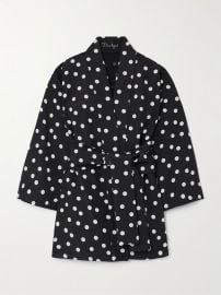 Jacket: Belted polka-dot textured-crepe jacket by Dima Ayad