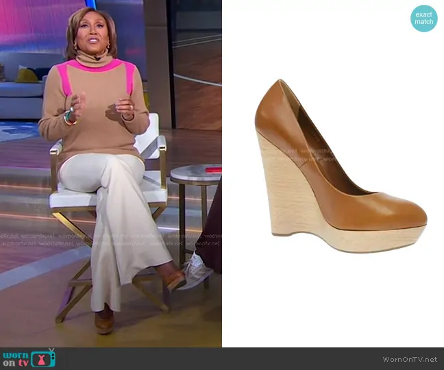 Saint Laurent Wooden Wedge heel Pumps worn by Robin Roberts on Good Morning America