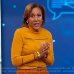 Robin Roberts on Good Morning America on ABC was spotted wearing this brown wedge heel pumps on Good Morning America on Jan 21 2025's episode. Robin's Shoes is the Wooden Wedge heel Pumps by Saint Laurent.