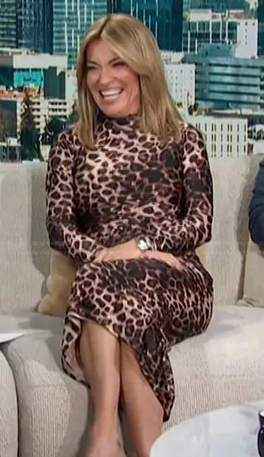 Kit Hoover on Access Hollywood on NBC was spotted wearing this leopard print long sleeve dress on Access Hollywood on Nov 06 2025's episode. Kit's Dress is the Leopard Print Satin Shine Midi-Dress by Good American.