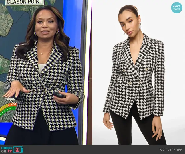Adelle Caballero on Today on NBC was spotted wearing this houndstooth blazer on Today on Jan 23 2025's episode. Adelle's Jacket is the Jia Houndstooth Blazer by Boss.