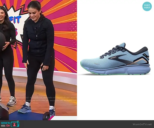 Donna Farizan on Today on NBC was spotted wearing this blue sneakers on Today on Jan 24 2025's episode. Donna's Shoes is the Ghost 15 Neutral Running Shoe in Vista Blue/Peacoat/Linen by Brooks.