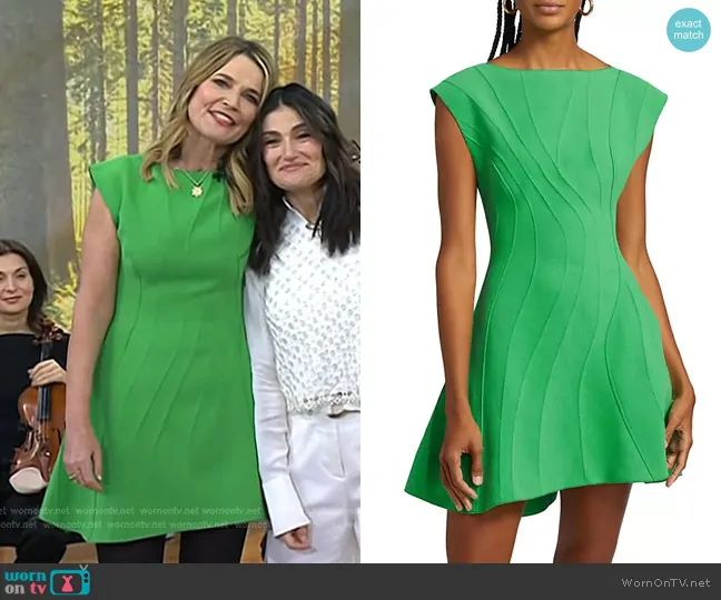 Savannah Guthrie on Today on NBC was spotted wearing this green mini dress on Today on Jan 27 2025's episode. Savannah's Dress is the Treven Mini Dress in Clover by Acler.