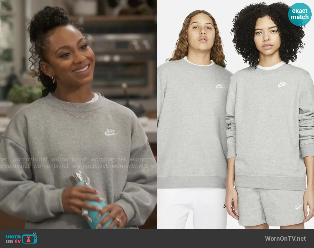 Nina (played by Tetona Jackson) on Poppas House on CBS was spotted wearing this grey Nike sweatshirt on Poppas House on episode 'Puppy' (1x09) in Jan 2025. Nina's Sweatshirt is the Crew-Neck Sweatshirt by Nike.