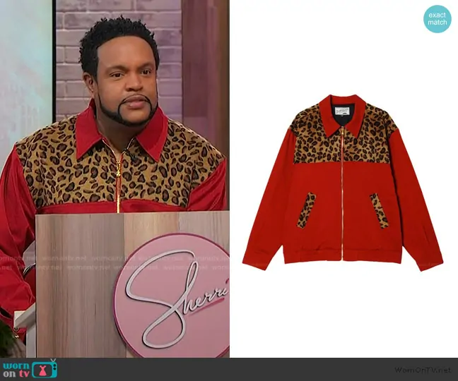Jawn Murray on Sherri on FOX was spotted wearing this red leopard denim jacket on Sherri on Jan 29 2025's episode. Jawn's Jacket is the Leopard Jacket by The Bogey Boys.