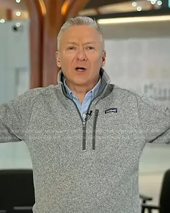 on Today on NBC was spotted wearing this grey fleece sweater on Today on Nov 14 2025's episode. 's Sweater is the etter Sweater 1/4-Zip Fleece in Stonewash by Patagonia.