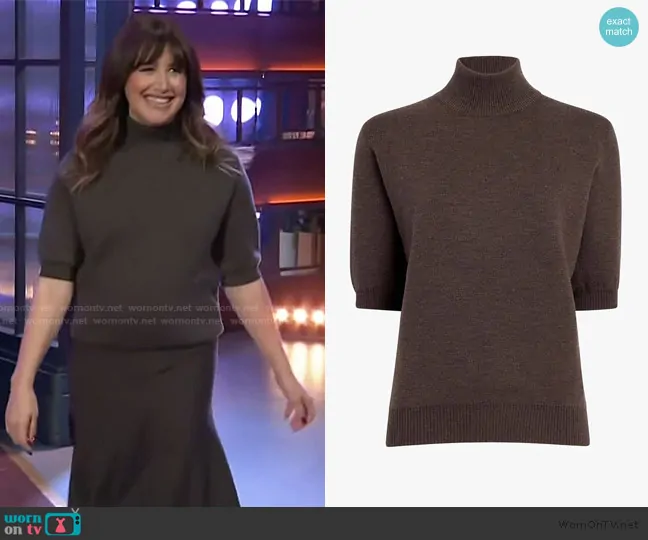 on The Kelly Clarkson Show on NBC was spotted wearing this brown short sleeve sweater and skirt on The Kelly Clarkson Show on Feb 03 2025's episode. 's Sweater is the Marco Top by Khaite . 's Skirt is the Mayu Skirt by Khaite.