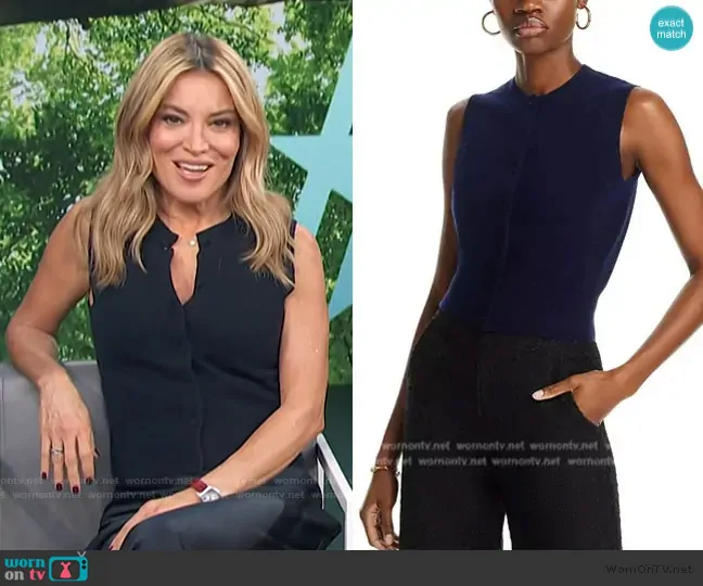 Kit Hoover on Access Hollywood on NBC was spotted wearing this navy knit vest on Access Hollywood on Feb 05 2025's episode. Kit's Top is the Cashmere Crewneck Sleeveless Cropped Sweater by Aqua Cashmere x Liat Baruch.