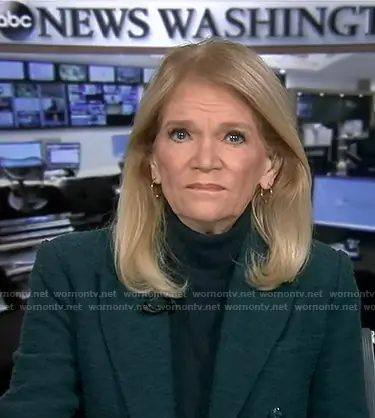 Martha Raddatz on Good Morning America on ABC was spotted wearing this green tweed blazer on Good Morning America on Oct 17 2025's episode. Martha's Jacket is the Brooke Double-Breasted Crop Blazer by L'Agence.