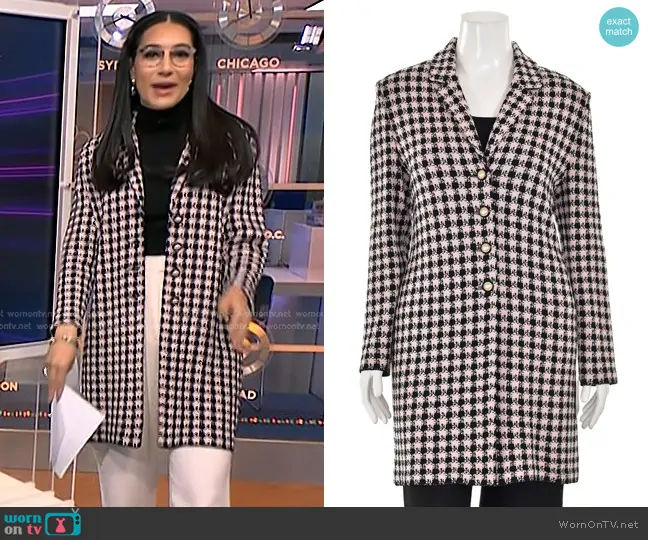 Jacket: Long Jacket in Light Pink/Black Plaid by St. John Collection