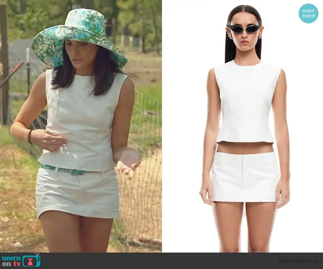 Paige DeSorbo on Southern Charm on Bravo TV was spotted wearing this white top and mini skirt on Southern Charm on episode 'The Birds & the B's' (10x09) in Feb 2025. 's Top is the Countryside Top by Lioness . 's Skirt is the Rhode Mini Skirt by Lioness . 's Hat is the Monet Sun Hat by Luisa Beccaria . 's Belt is the Satin Monet Belt by Luisa Beccaria.