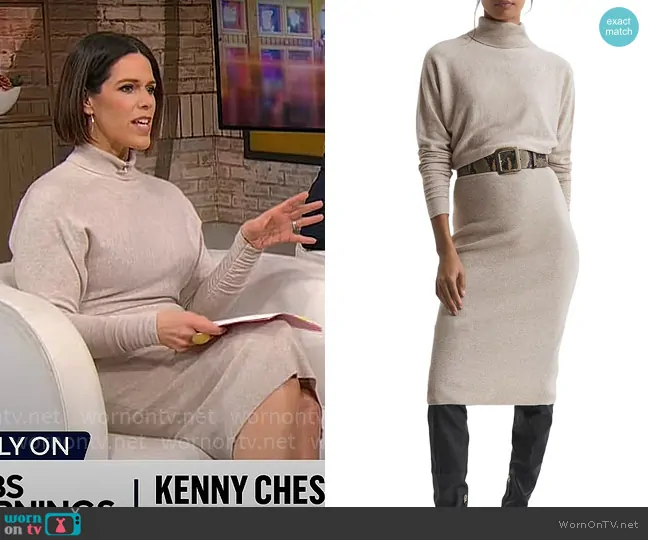 Dana Jacobson on CBS Mornings on CBS was spotted wearing this beige turtleneck sweater dress on CBS Mornings on Feb 06 2025's episode. Dana's Dress is the Fallon Dress by Reiss .