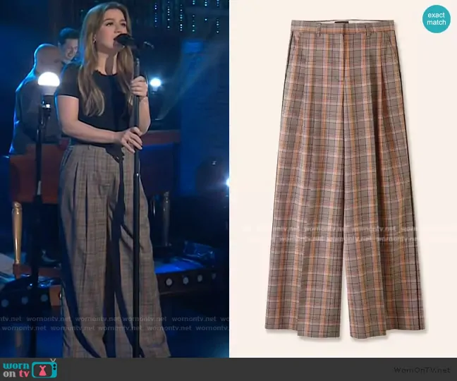 Me + Em Multi Check Pleat Front Man Pant worn by Kelly Clarkson on The Kelly Clarkson Show