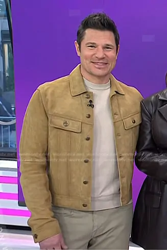 Ralph Lauren Purple Label Clifton Suede Trucker Jacket worn by Nick Lachey on Today