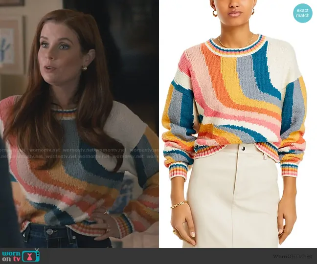 Maddie Townsend (played by JoAnna Garcia Swisher) on Sweet Magnolias on Netflix was spotted wearing this swirl print sweater on Sweet Magnolias on episode 'True North' (4x05) in Feb 2025. Maddie's Sweater is the The Itsy Crop Sweater by Mother.