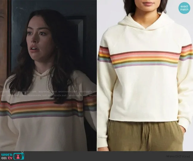 Annie Sullivan (played by Anneliese Judge) on Sweet Magnolias on Netflix was spotted wearing this white rainbow stripe hoodie on Sweet Magnolias on episode 'True North' (4x05) in Feb 2025. Annie's Sweater is the Anytime Cropped Hoodie by Marine Layer.