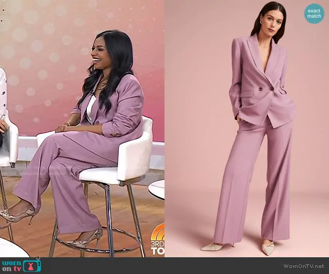 on Today on NBC was spotted wearing this pink blazer and pant suit on Today on Feb 11 2025's episode. 's Jacket is the The Relaxed Double-Breasted Blazer in Heather Flannel by Ann Taylor . 's Pants is the The Perfect Wide-Leg Pant in Flannel by Ann Taylor.