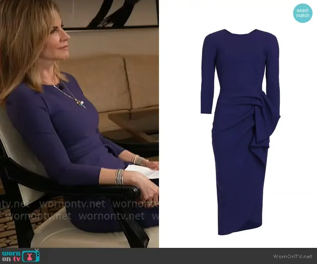 Natalie Morales on CBS Mornings on CBS was spotted wearing this Natalie Morales’ navy dress on CBS Mornings on Feb 12 2025's episode. Natalie's Dress is the Gathered Side Midi-Dress in Iris by Chiara Boni La Petite Robe .