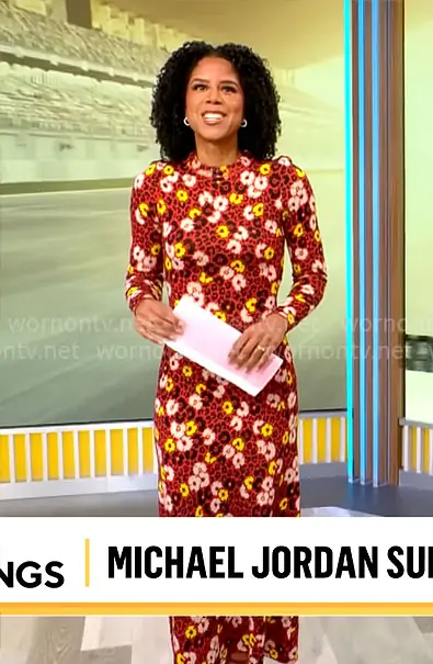 Adriana Diaz on CBS Mornings on CBS was spotted wearing this red floral maxi dress on CBS Mornings on Dec 02 2025's episode. Adriana's Dress is the Floral print long dress by The Kooples .