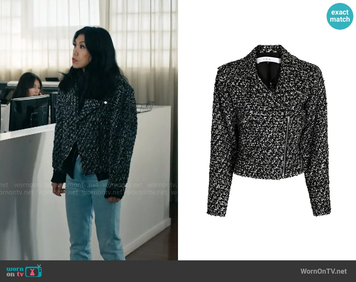 Melody Bayani (played by Liza Lapira) on The Equalizer on CBS was spotted wearing this black and white tweed jacket on The Equalizer on episode 'Guns and Roses' (5x08) in Feb 2025. Mel's Jacket is the Voxy Jacket by IRO.
