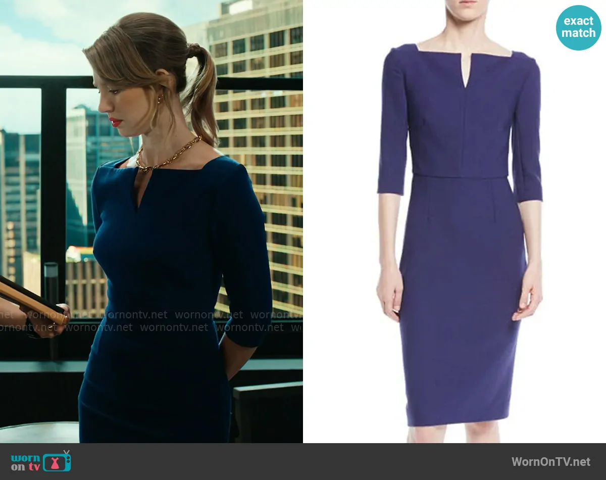 Shae Banfield (played by Yael Grobglas) on Matlock on CBS was spotted wearing this blue split-neck sheath dress on Matlock on episode 'A Traitor in Thine Own House' (1x11) in Feb 2025. Shae's Dress is the Etty Dress by Roland Mouret.