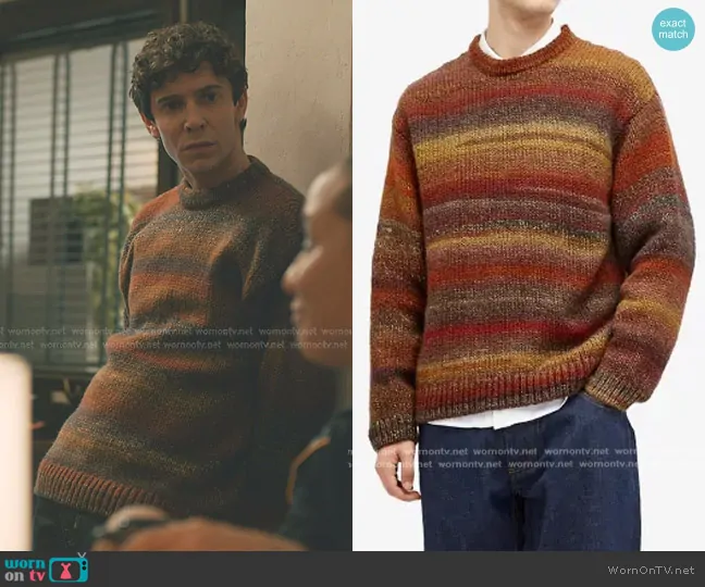 Teddy Tascioni (played by Ben Levi Ross) on Elsbeth on CBS was spotted wearing this Teddy’s brown striped sweater and check jacket on Elsbeth on episode 'Foiled Again' (2x12) in Feb 2025. Teddy's Sweater is the Striped Crewneck Sweater in Brown by YMC . Teddy's Jacket is the Gael 8267 Checkered Jacket by NN07.