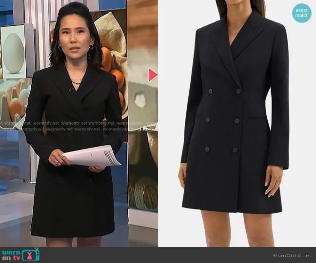 Vicky Nguyen on NBC News Daily on NBC was spotted wearing this black double breasted blazer dress on NBC News Daily on Aug 21 2025's episode. Vicky's Dress is the Double-Breasted Blazer Dress in Sevona Stretch Wool by Theory.