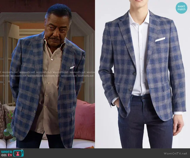 Abe Carver (played by James Reynolds) on Days of our Lives on Peacock was spotted wearing this blue plaid blazer on Days of our Lives on Mar 04 2025's episode. 's Jacket is the Hutson Plaid Wool Blend Sport Coat in Open Blue by Boss.