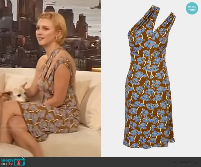 on The Drew Barrymore Show on CBS was spotted wearing this floral print one shoulder dress on The Drew Barrymore Show on Mar 06 2025's episode. 's Dress is the Floral Print One-Shoulder Backless Crepe Cocktail Dress by Versace.