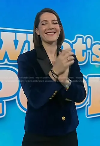 on Today on NBC was spotted wearing this Daryn Carp’s blue velvet blazer on Today on Mar 11 2025's episode. 's Jacket is the Devyn Boxy Crop Velvet Blazer by Alice + Olivia.