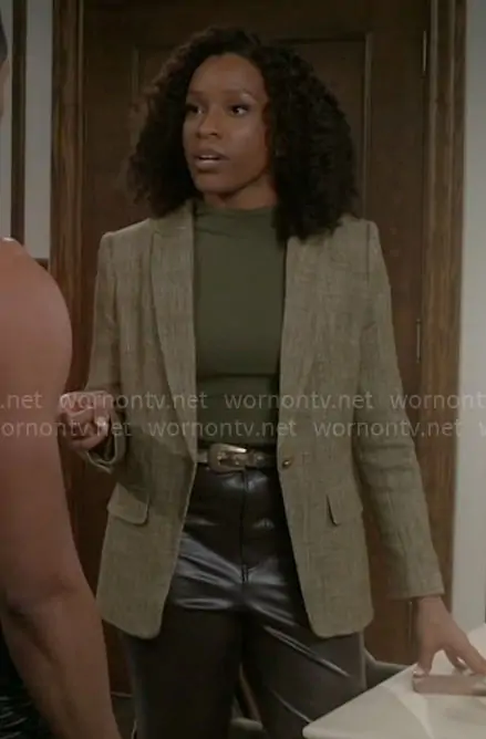 Naomi Hamilton Hawthorne (played by Arielle Prepetit) on Beyond the Gates on CBS was spotted wearing this tweed blazer on Beyond the Gates on Apr 06 2026's episode. Naomi's Jacket is the Textured One-Button Jacket by Donna Karan.