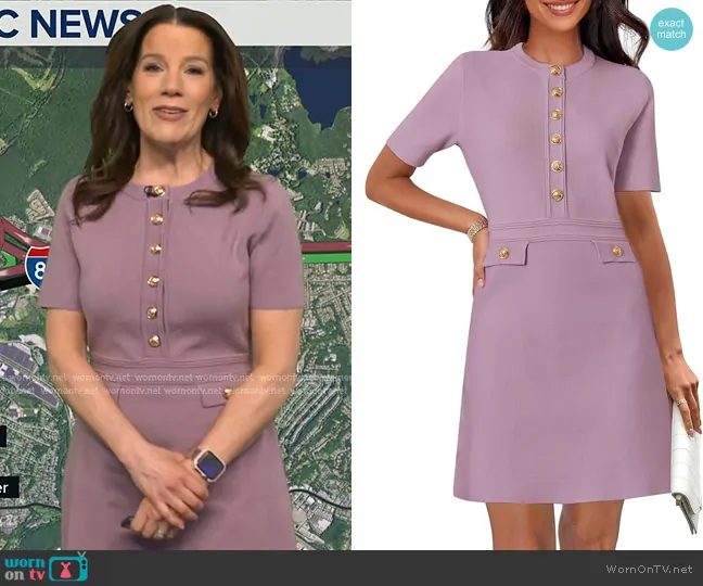 Heather O’Rourke on Good Morning America on ABC was spotted wearing this lilac button front knit dress on Good Morning America on Jan 07 2026's episode. Heather's Dress is the Short Sleeve Bodycon Sweater Dress in Taro by MEROKEETY.