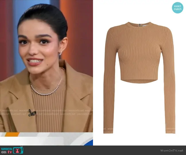 on Good Morning America on ABC was spotted wearing this brown blazer and skirt on Good Morning America on Mar 20 2025's episode. 's Top is the Arcella Stretch Viscose Crepe Rib Top in Siena by Max Mara . 's Jacket is the Kitten Single Breast Blazer in Camel by Max Mara . 's Skirt is the Aeroso Silk Long Skirt in Camel by Max Mara.